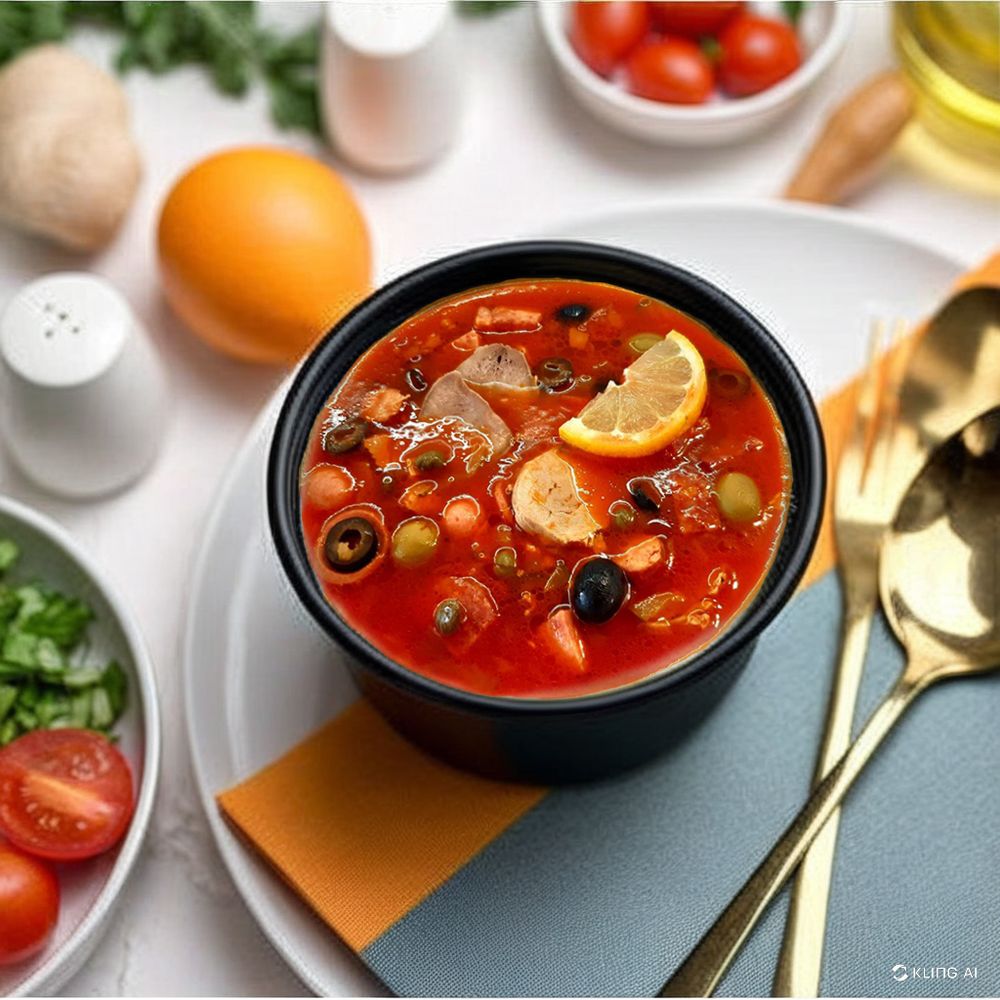 Говяжий бульон говядина колбаса копчёная сосиски картофель лимон оливки Описание