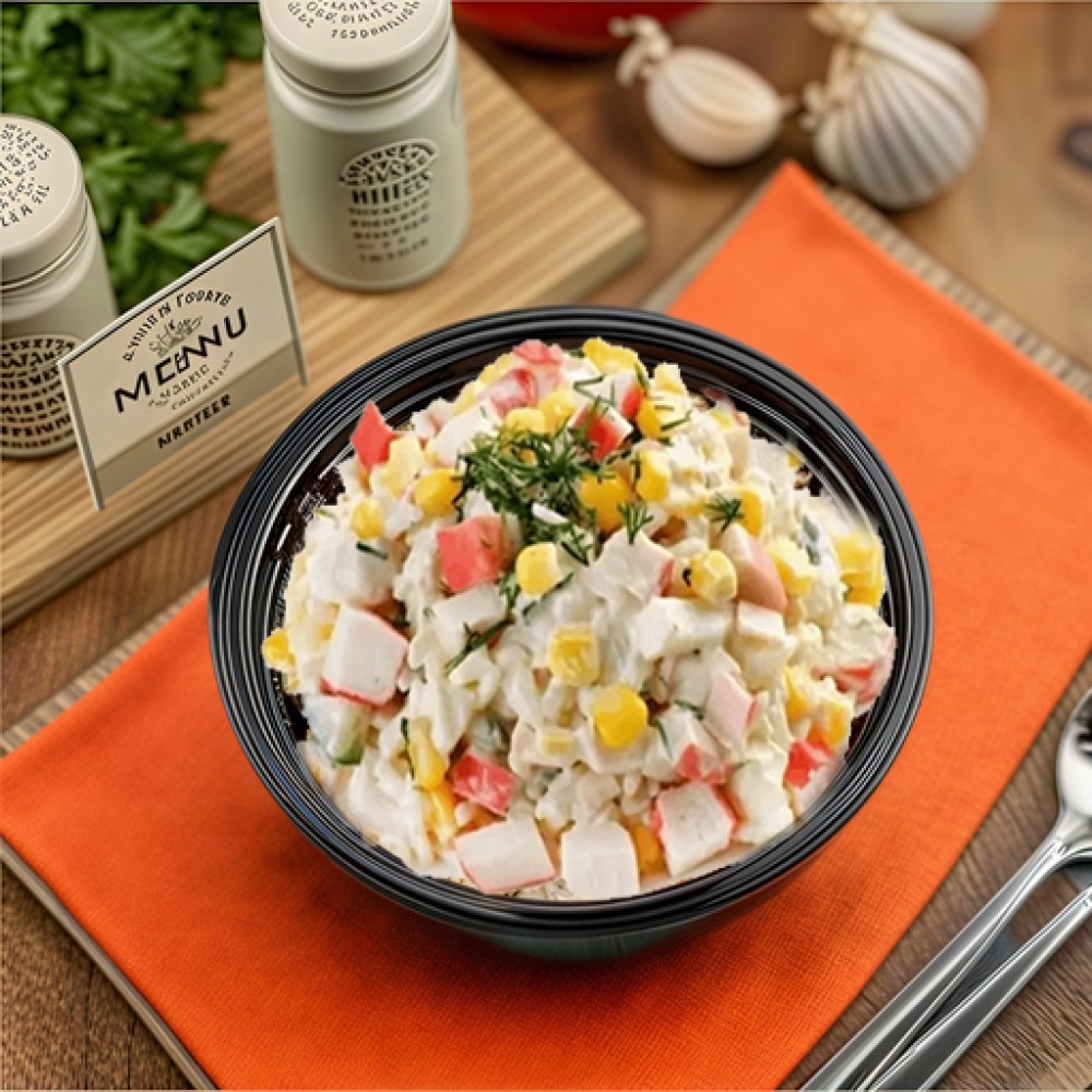 Огурец,яйца,крабовые палочки,кукуруза,майонез